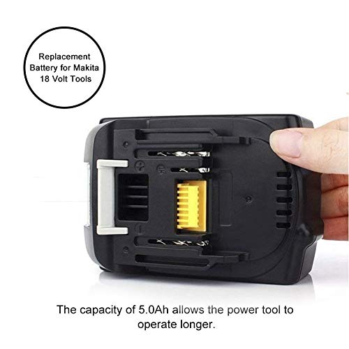 - 【Especificación】 Tipo de batería: Li-ion, Voltaje: 18V, Capacidad: 5000mAh, Color: Negro; Paquete: 2 baterías recargables BL1850.
