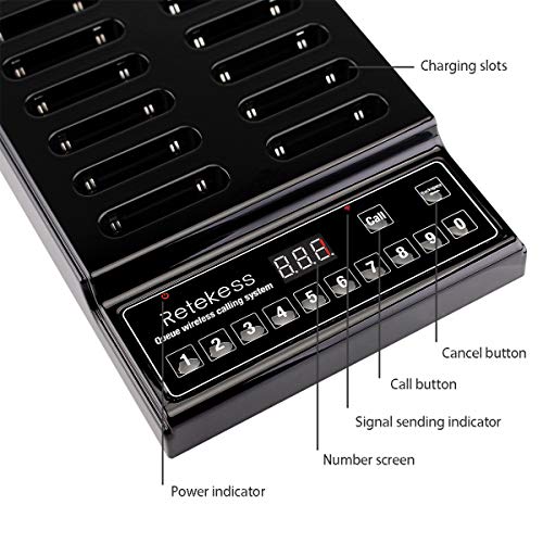 Título: Retekess T112 Sistema de Llamadas Sistema de Buscapersonas CE Canal 999 con un Transmisor y 20 Localizadores Recargables para Restaurante Food Court Factory Cafetería Lglesia