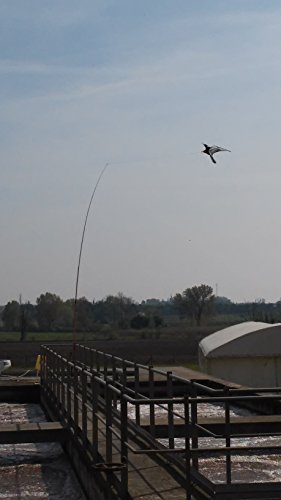 Más informaciónes y vídeos en nuestra página web scarybird.com Materiales de alta calidad técnicas: fibra de vidrio, nylon de alta resistencia resistente al viento, el sol, la lluvia ... Viene en una bolsa de transporte que contiene asta telescópica de 6 metros, cometa y estanca.